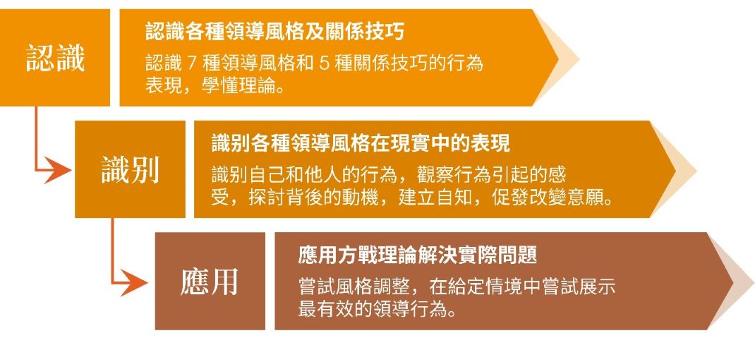 - 本課程是深度發展領導力的手段,課程基於50多年來對心理學、行為學的研究,深入到價值觀、個人認同(Identity)和個人動機的層次探討人們的行為,因此高於一般管理技巧類培訓,是繼一般管理技巧類培訓後,對領導力進行深度探討和發展的解決方案。